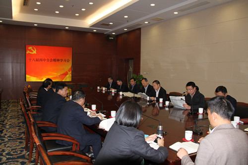 11月19日,公司党委中心组组织学习会,专题学习党的十八届四中全会精神,公司党委书记、董事长龚国贤主持学习会,党委委员、副总经理高立在学习会上领学四中全会《公报》。